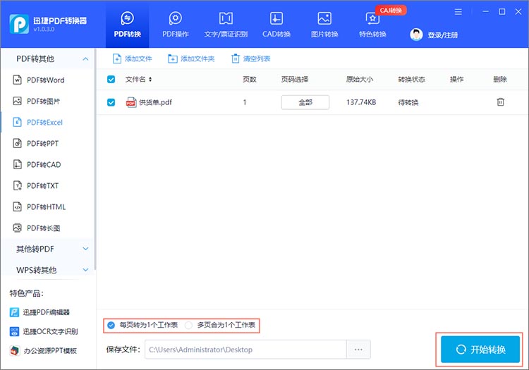 3.批量操作:迅捷PDF转换器的PDF转Excel功能还支持批量转换,用户可以一次转换多个PDF文件,并将它们保存为单独的Excel文件。