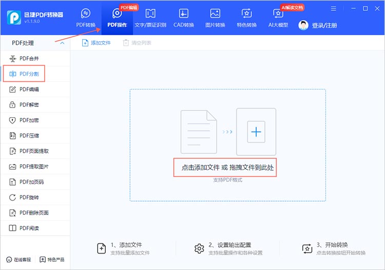 迅捷PDF转换器是一款功能强大的PDF处理工具,支持PDF与多种格式的转换,同时提供PDF拆分、合并、加密、解密等多种实用功能。以下是使用迅捷PDF转换器拆分PDF的具体步骤: